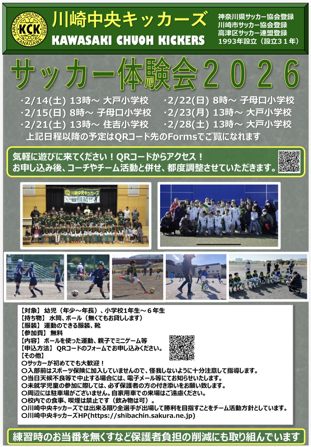 川崎中央キッカーズは神奈川県サッカー協会及び川崎市サッカー協会第4種少年委員会に登録している、1993年創立の少年サッカーチームです。川崎市高津区、中原区の幼稚園生から小学校6年生までの「大好きなサッカーをやりたい」、「たくましくなりたい」と願う子どもたちを応援するため活動しています。